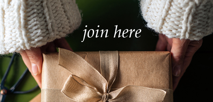 Every day throughout December, you’ll receive a gift in your inbox. At the end of each email, you’ll find links to the gifts that came before. If you join after we get started, miss a gift, or want to revisit one of your favorite gifts (or all of them), this list makes it easy to go back.