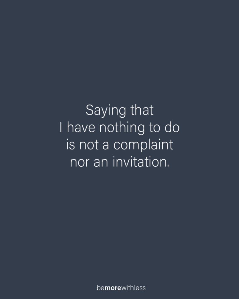 Saying that I have nothing to do is not a complaint nor an invitation.