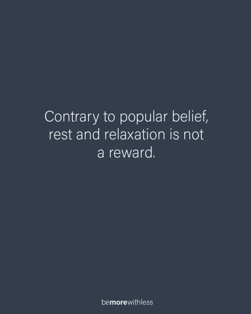 We’ve done a big disservice by portraying rest and relaxation as something you get if you work hard, can do if you get everything done by the end of the day or something you deserve if you are completely run down and burnt out.