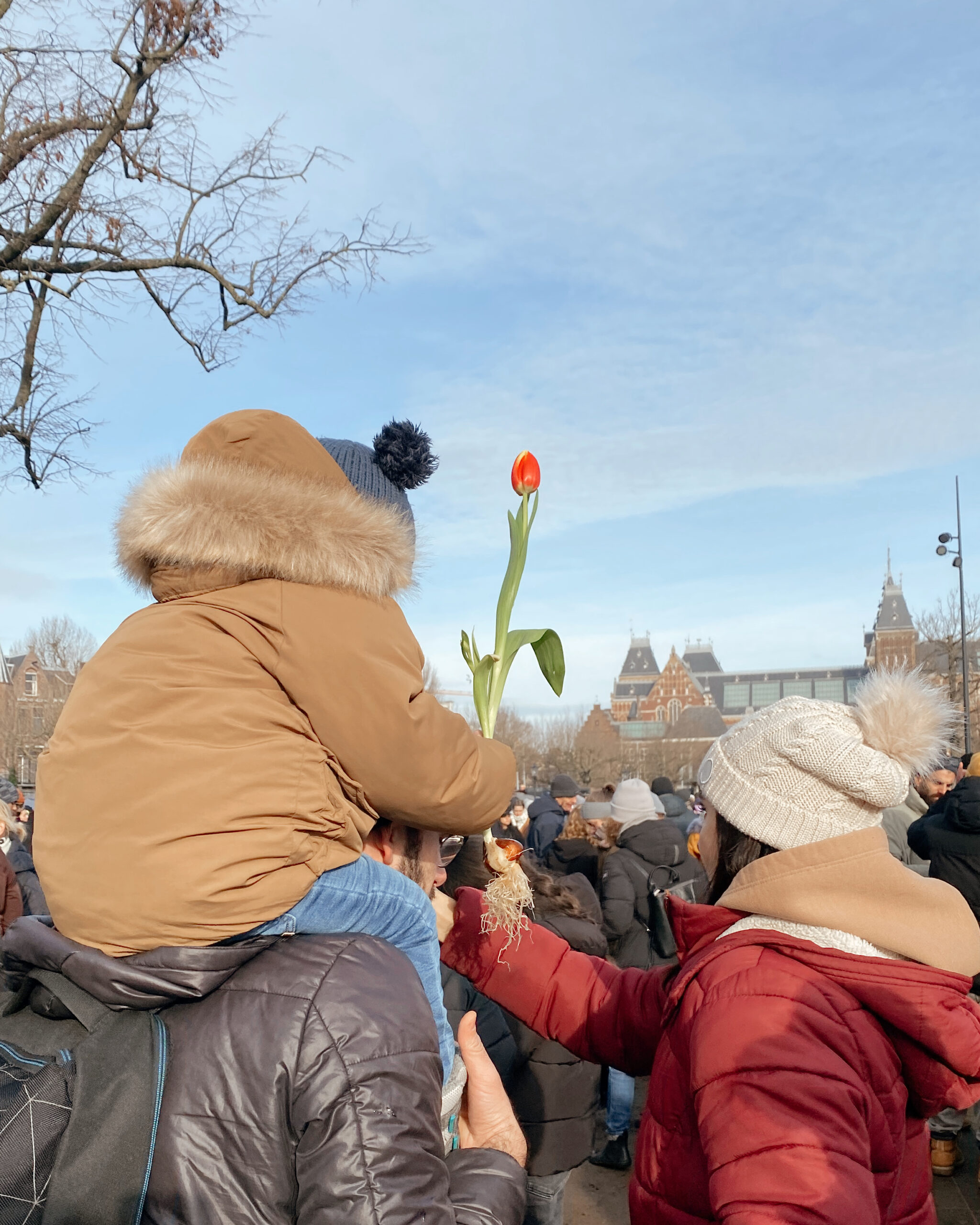 One of the sweetest parts of my recent trip was being in Amsterdam on National Tulip Day! I didn’t know it was going on until I was in the square where everyone was picking up tulips for their gardens. Then, all day long as I roamed around the city, people were carrying tulips. Even though it was a cold day, the mood of the city was heart-warming.