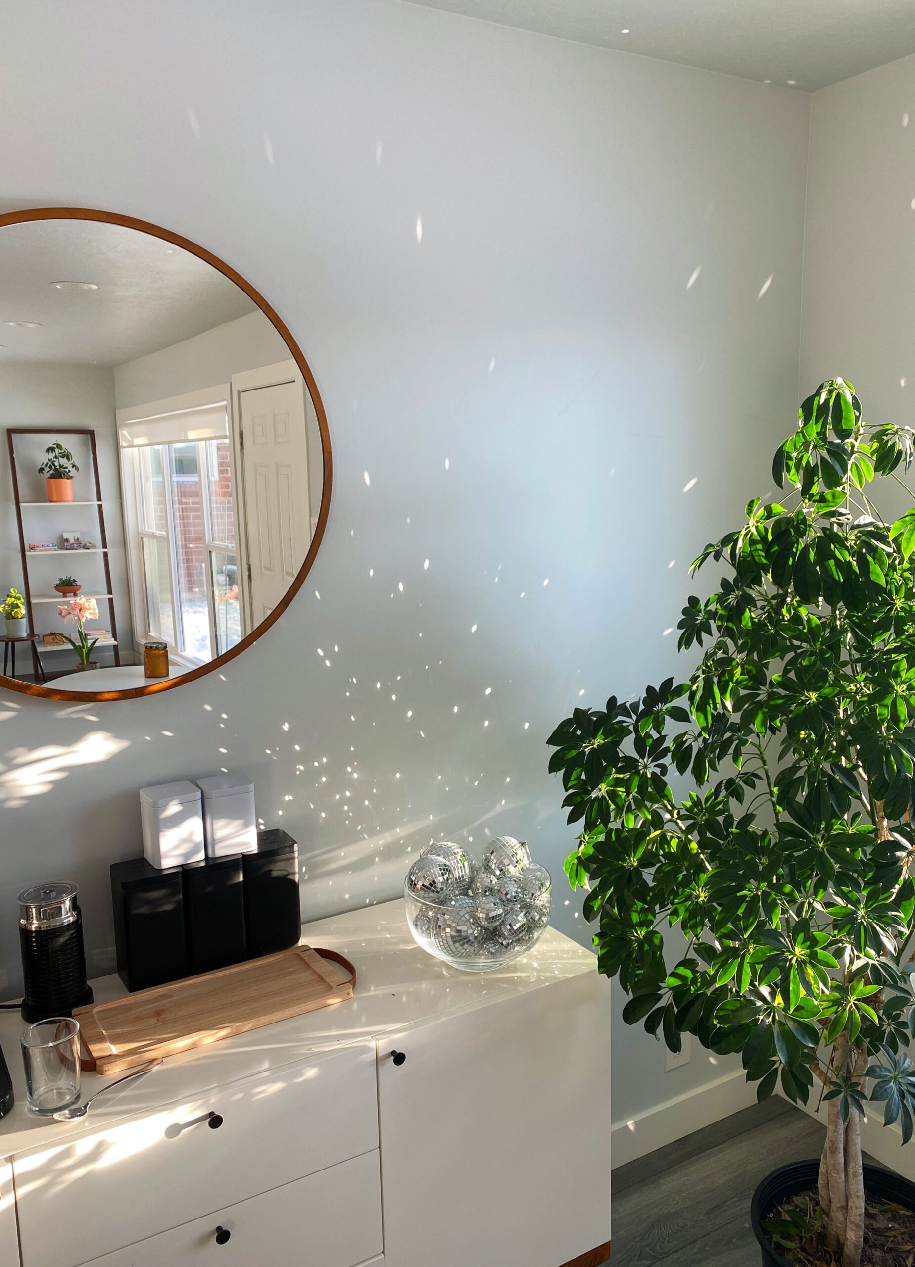 If you are simplifying your life, decluttering and letting things go, keep in mind that owning less doesn’t mean owning nothing. Keep the things you use, keep the things that add value to your life and even hold on to the things that make you smile (see my bowl of disco balls above). Let go of the things that weigh you down and stress you out and make room to live the way you want to live.