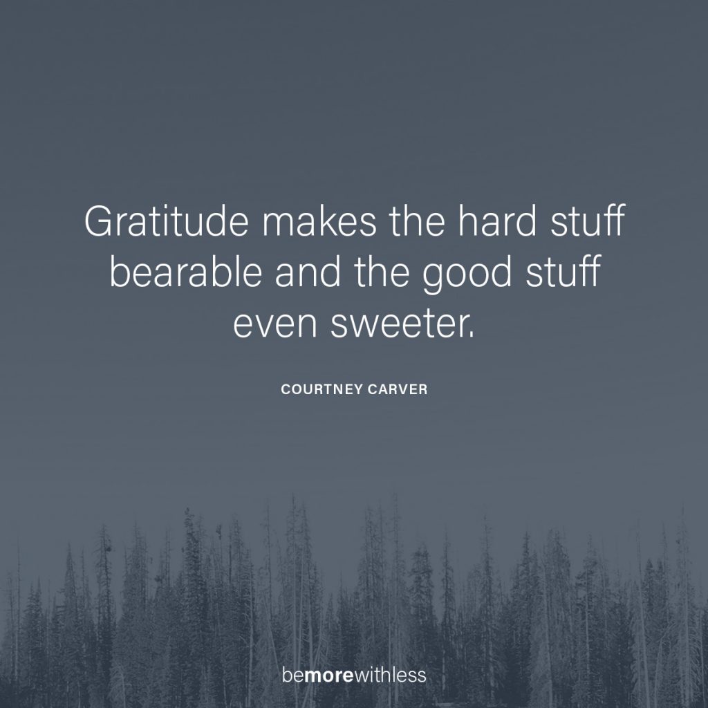 Here’s the thing … we can work to simplify our lives, take better care of ourselves, and reduce stress but some things are not in our control. There will always be surprises, uncertainty, difficult people, loss, and failure. With a reserve of grace and gratitude, we’ll get through the hard stuff and come out stronger on the other side.