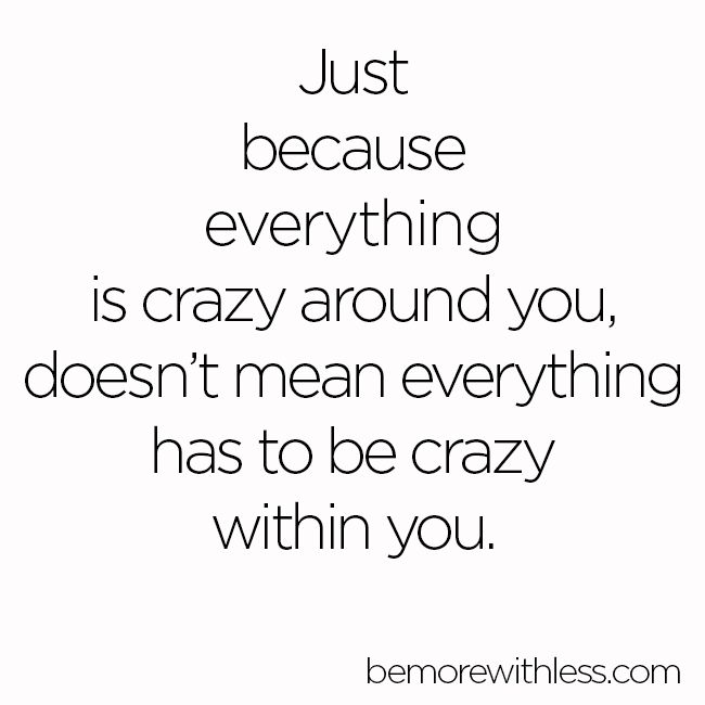 Just because everything is crazy around you doesn’t mean everything has to be crazy within you.