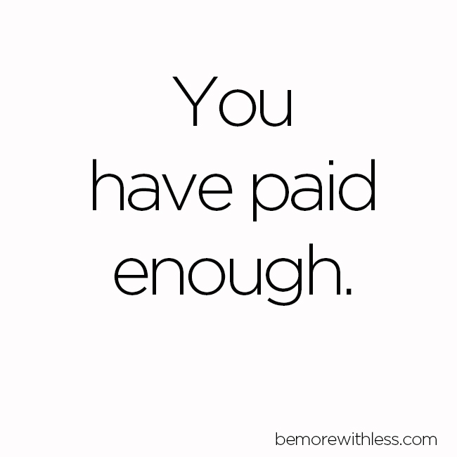 This is the worst payment of all. You pay with emotion, by holding onto the past, by punishing yourself for old habits. You pay with guilt, anger, and indecision.