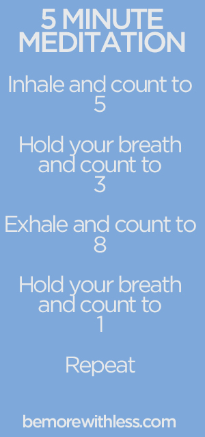 Use this simple meditation practice in a way that works best for you. If 3 minutes is more manageable to start, try that. If you want to change the counts, go for it. You can call this mediation, breath work, your saving grace, or whatever you want. What you call it is way less important than what you do with it.