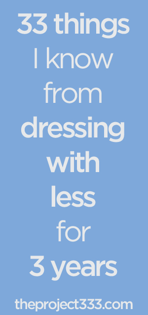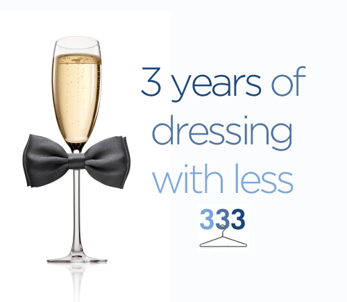 Today is the 3rd anniversary of Project 333. I’ve been dressing with less for three years and it all started with a crazy experiment. It turns out that this crazy experiment that some have labeled “too extreme” is not that extreme at all. It’s become a change in lifestyle, an important part of my microbusiness, and a powerful way to connect with really great people like you.