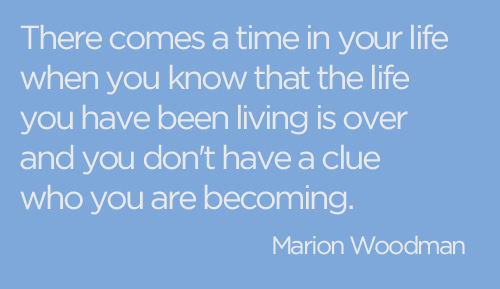 Maybe Marion Woodman is right and you don’t have a clue who you are becoming. You don’t have a clue how things will turn out and you don’t know what’s next. No one really knows. The important thing is that you know who you are right now. Be you from the inside out and everything will be better than you imagined.