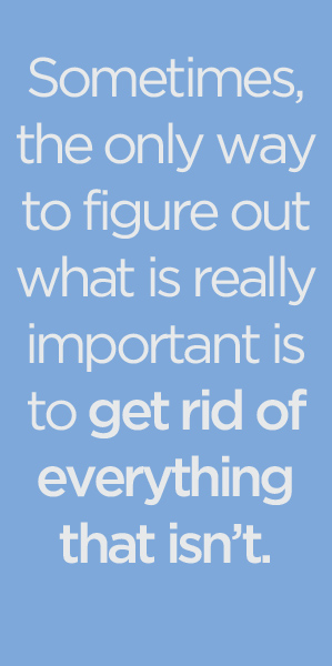 Living with less is not a project in suffering, but instead a way to discover what is most important. Sometimes, the only way to figure out what is really important in your life is to get rid of everything that isn’t.