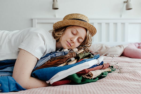 - Overwhelmed because even though you don’t wear most of the stuff in your closet, it’s hard to let it go.